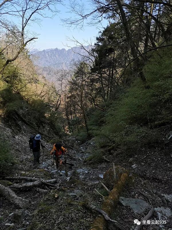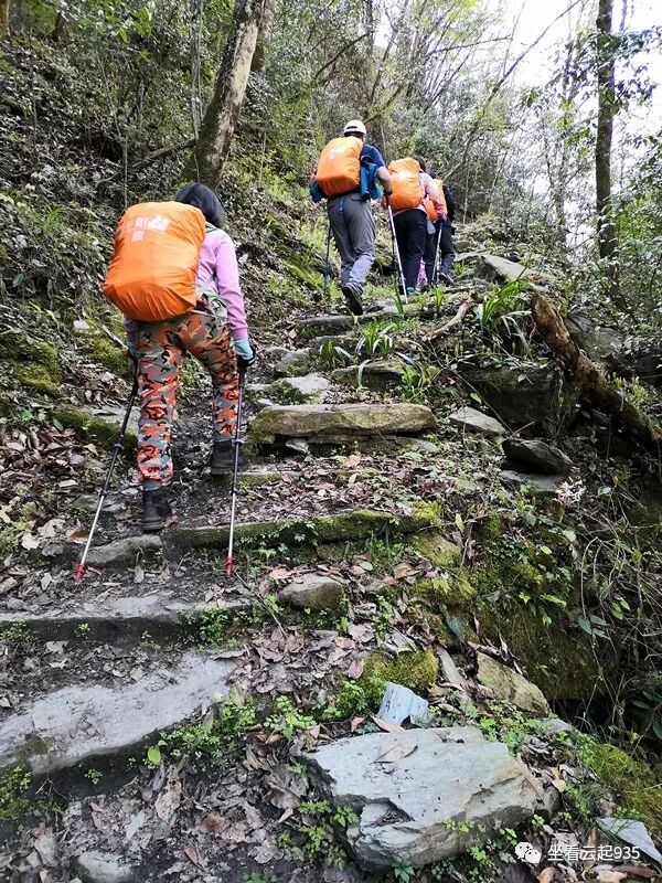 一路上来,确实不易,登上摩天岭的喜悦让一天的疲惫一扫而光。后面听蓝图她们讲,最后一波徒友鸿雁等几位登上摩天岭,竟是喜极而泣,久久不能平复。想想也是,今天这个强度,对于初次参加的徒友,确实有点挑战体能极限了。 回头再想想当年的邓艾,走阴平古道时已经七旬有余,老骥伏枥,父子同兵,为了功名,也算是把身家性命全部赌在其中。《三国志》记载,“冬十月,艾自阴平道行无人之地七百馀里,凿山通道,造作桥阁。山高谷深,至为艰险,又粮运将匮,频於危殆。艾以氈自裹,推转而下。将士皆攀木缘崖,鱼贯而进。先登至江由,蜀守将马邈降。” 下山的路是欢快的,在一处清潭,我跟高、仁用清冽的泉水痛快地洗了把脸,路过两位徒步的老夫妇友好地提醒我,这个水可千万不要喝哟!其实,我想,喝了也无妨。