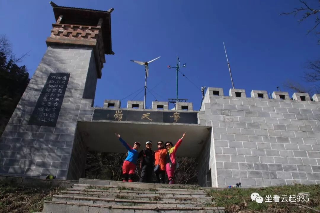 15时30分左右,我们几个终于登上摩天岭,前面的7位徒友已经休息了好一阵子。大家休息了一阵,心情顿时大好。鬼鬼、小丸子、果儿三个先上来的女士还象征性地庆祝了一下。 摩天岭的牌楼上,刻着《三国演义》里评邓艾的诗“阴平峻岭与天齐,玄鹤徘徊尚怯飞。邓艾裹毡从此下,谁知诸葛有先机。”我想找一下诸葛武侯题字的碑,未得一见。回来查看《三国演义》中的描写,才发现不在此处,应该在摩天岭下面一点,在下山途中也未得一见。书中如此写道:邓艾、邓忠,并二千军,及开山壮士,皆度了摩天岭。方才整顿衣甲器械而行,忽见道傍有一石碣,上刻:“丞相诸葛武侯题”。其文云:“二火初兴,有人越此。二士争衡,不久自死。”艾观讫大惊,慌忙对碣再拜曰:“武侯真神人也!艾不能以师事之,惜哉!”演义中描写的诸葛武侯,确实有些神化,但也非得增加些神话色彩,才使得小说神采飞扬,流传百世。