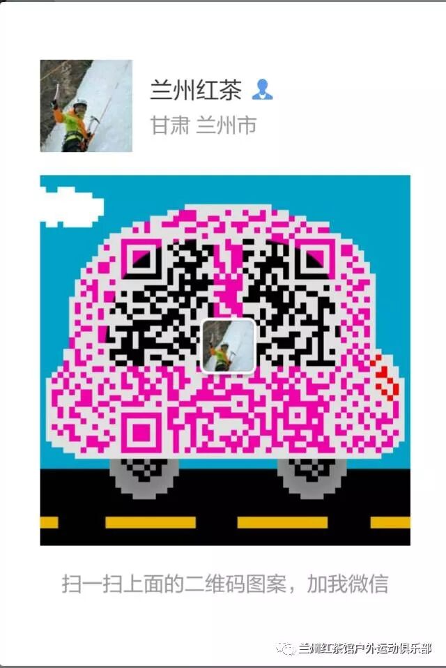 红茶馆户外 微信号: hcghw13993183519 (←长按复制) 一群兰州本地户外爱好者集聚而成的户外团体,我们热爱生活、热爱户外活动。我们擅长的活动方式:徒步穿越、登山、攀冰、马拉松、越野跑!关注我们,这里有最好的户外活动带给你最棒的户外体验!